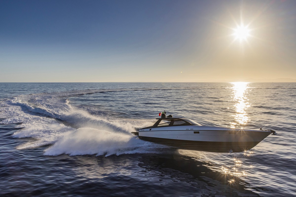 Esternamente troviamo una tuga semi-open con un parabrezza ed una finestratura avvolgente che regala la sensazione en plein air ma che elimina tutti gli svantaggi di un open puro offrendo invece costante protezione dal sole e dal vento. Fornisce inoltre un profilo più aerodinamico che diminuisce le turbolenze per assicurare migliori prestazioni e maggiore comfort a bordo alle altissime velocità.