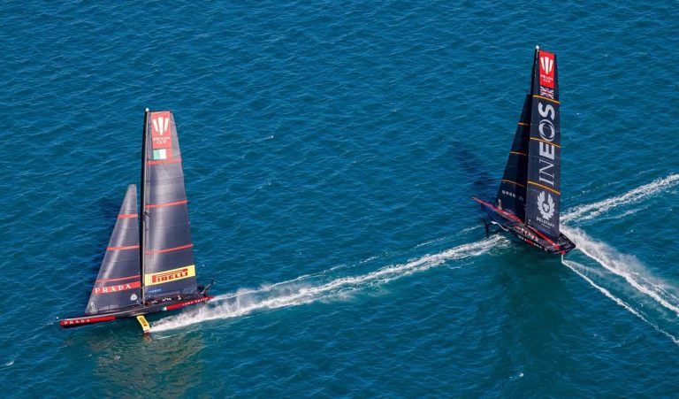 Prada Cup Finale 2021 Giorno 1: il primo giorno di regate nella finale della Prada Cup tra Luna Rossa Prada Pirelli e Ineos Team UK inizia con due solide vittorie. Le condizioni di vento leggero durante la prima parte della giornata hanno portato il comitato di regata a scegliere il campo A per le gare della giornata.