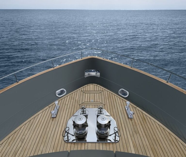 Anche il fly deck è stato sottoposto a restyling, rimuovendo la gruetta del tender e spostando quest’ultima sulla nuova plancetta mobile Sanguineti Chiavari posizionata a poppa (il gruppo Quick ha acquisito il 100% di Sanguineti Chiavari all’inizio di quest’anno), garantendo così più spazio per gli ospiti. Altrettanto importante è che siano state privilegiate soluzioni sostenibili come la scelta del teak sintetico per i materiali interni ed esterni.