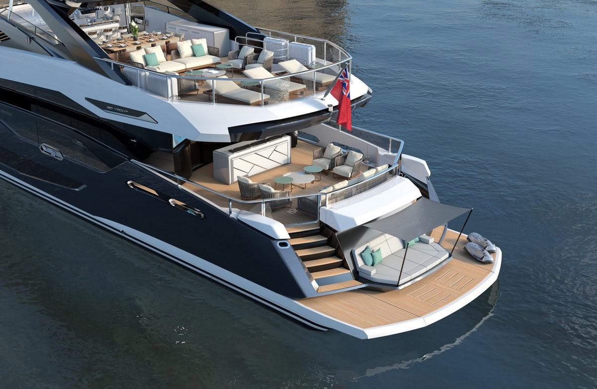 Il Sunseeker 120 Yacht è il nuovo superyacht, che si stende su tre ponti, che vanta con un ampio pozzetto di poppa, un imponente flybridge e una cabina armatoriale mozzafiato sul ponte principale.