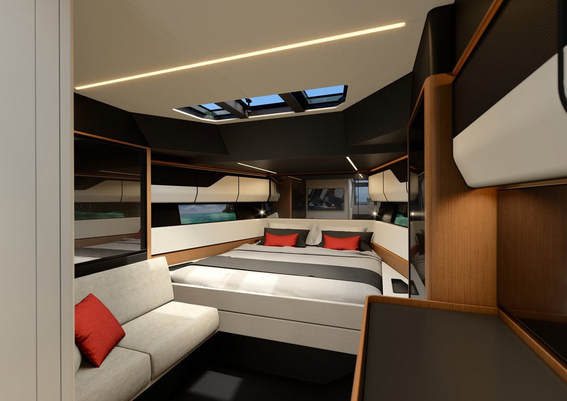 Anche sottocoperta, il wallypower50 rivela i suoi punti di forza: non troviamo solo un bagno completo con doccia separata, ma anche uno spazio flessibile in grado di offrire tutto il necessario per un weekend o persino per crociere più lunghe. Un ampio letto matrimoniale a prua, un’accogliente area salotto e kitchenette, tutti con finiture di alto livello, dimostrano come il wallypower50 possa essere davvero il pied-à-terre ideale ovunque si voglia andare.