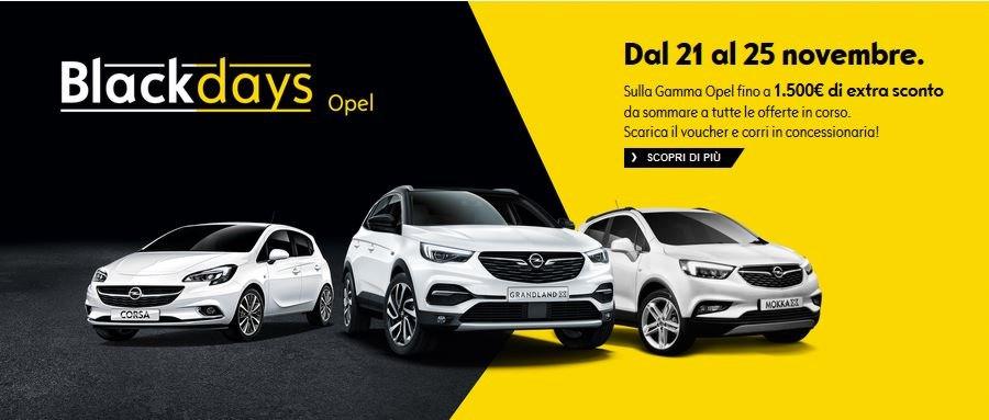 Il Black Friday Opel assume il nome di Operazione Black Days Opel. In questo periodo e solo per pochi giorni sarà possibile acquistare una nuova Opel, a condizioni economiche estremamente vantaggiose. Da tenere presente comunque tutte le promo auto di