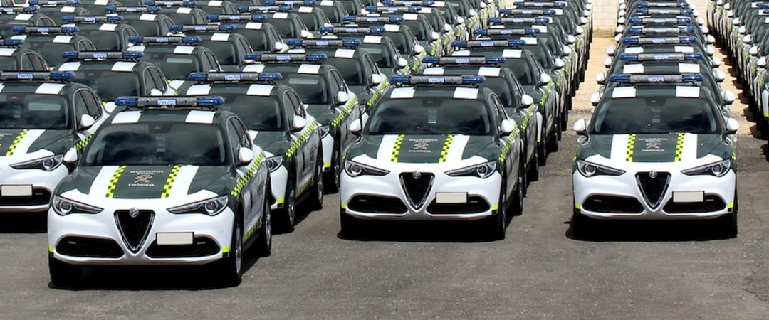 Un video mostra un’Alfa Romeo Stelvio di cartone della Guardia Civil usata come deterrente mentre davanti a lavori stradali.