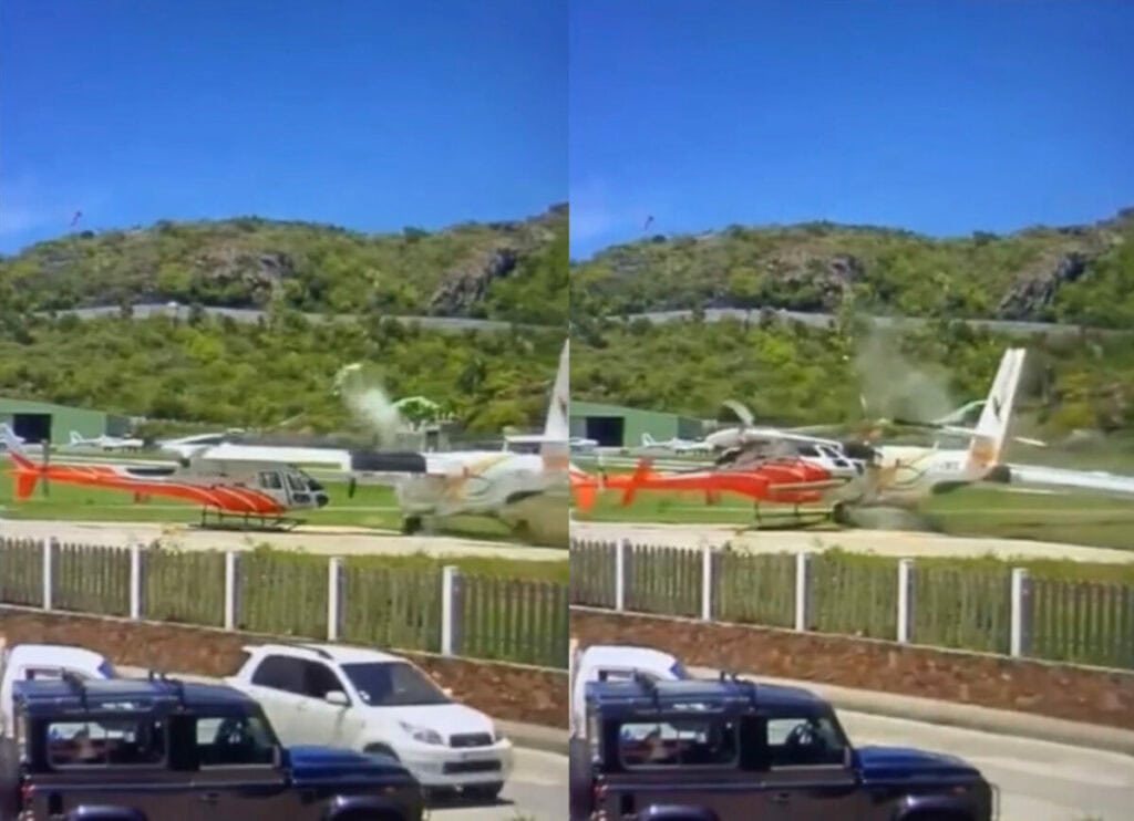 Aereo in atterraggio travolge elicottero: tutti sopravvissuti.