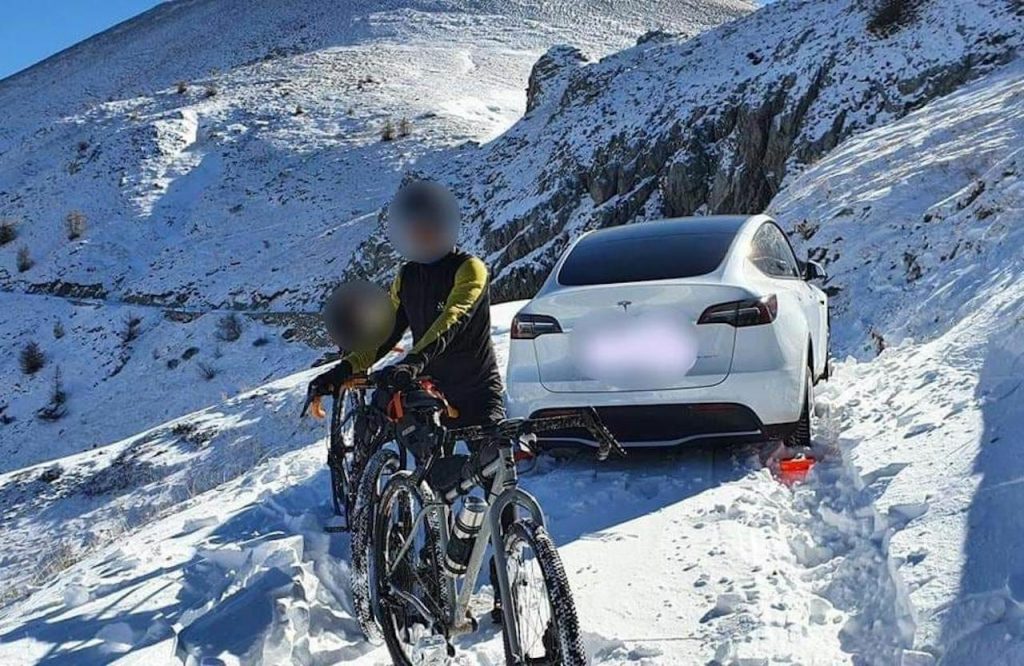 Due automobilisti percorrono una strada chiusa per neve, rimanendo bloccati con la loro Tesla con il 12% di batteria a 2.200 metri di quota, dovendo così chiamare i soccorsi.