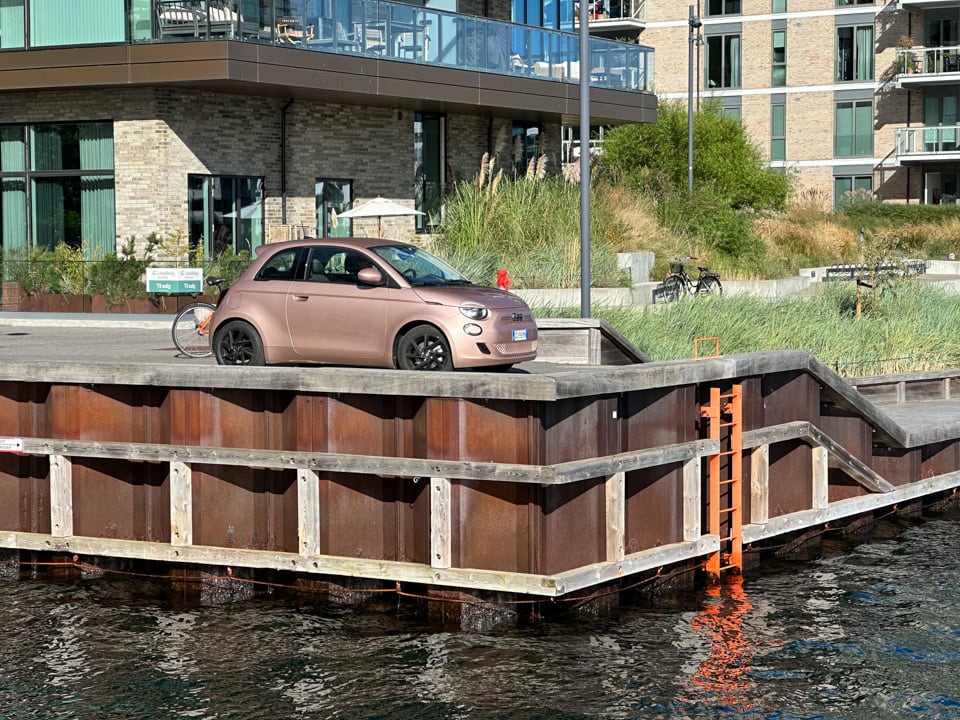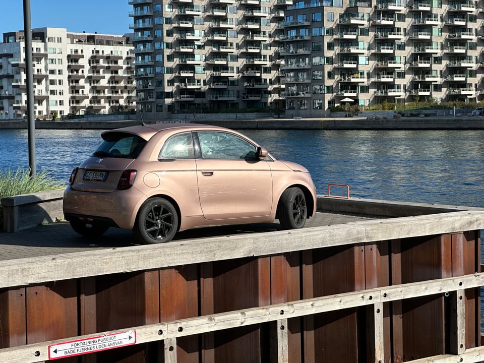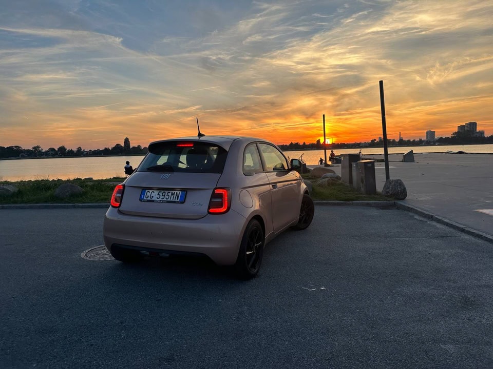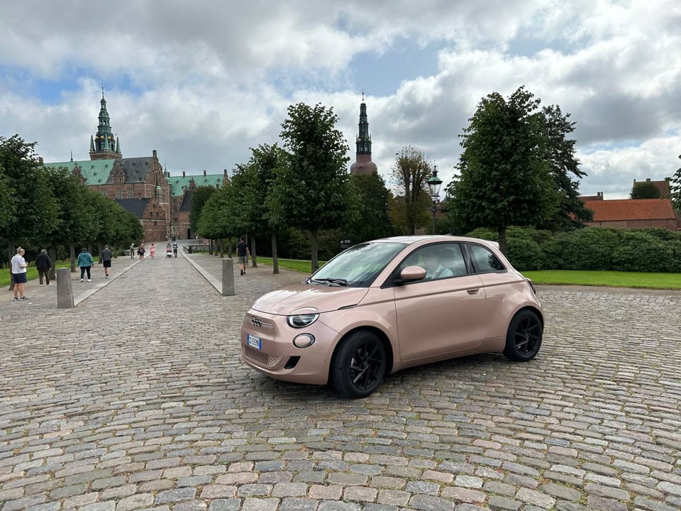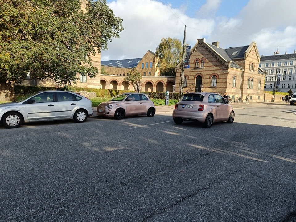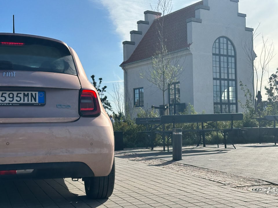 Avvistata: una Fiat 500e con targa italiana parcheggiata davanti all’Università di Copenhagen insieme a una sua gemella