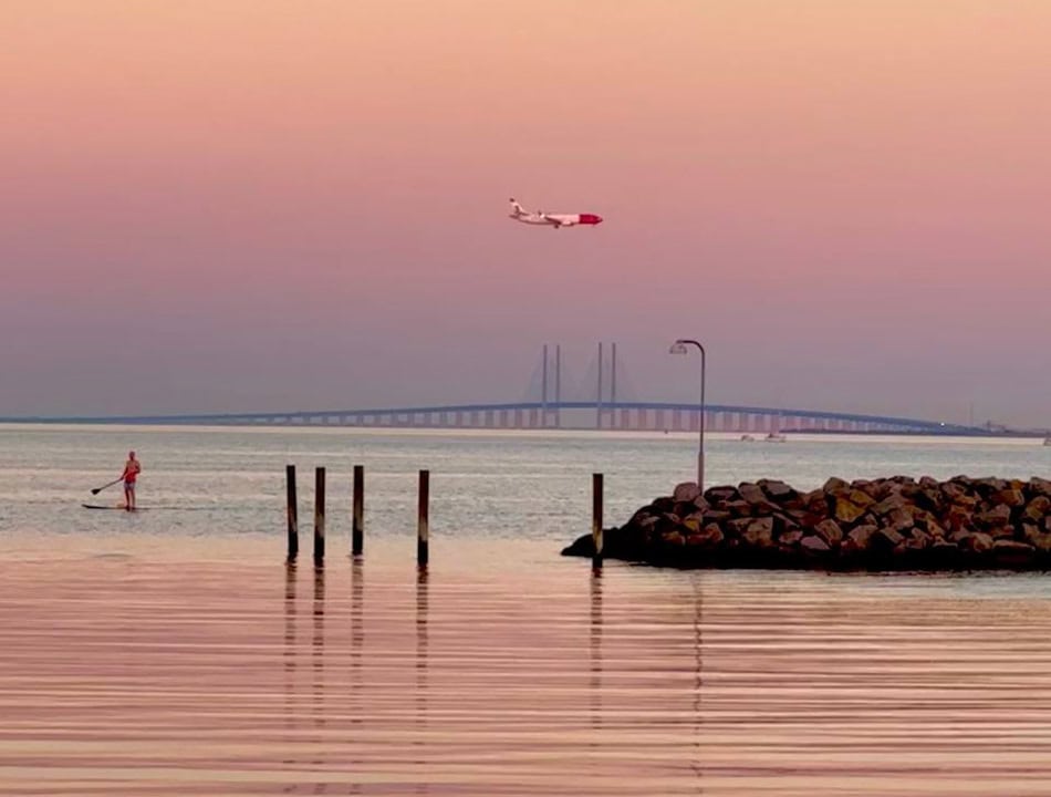 Proseguendo su Amager, arriviamo quasi all’aeroporto, ad Amager Strand. La vista qui è sul Ponte dell’Øresund, che unisce Danimarca e Svezia