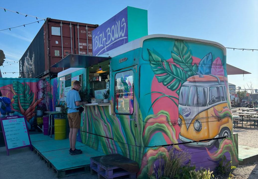 Molto grande, è fatto di container colorati ognuno con un tipo di cucina diversa
