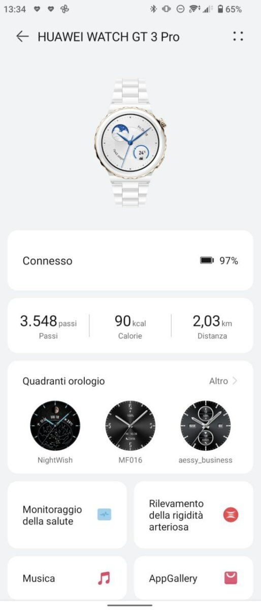 Lo smartwatch si installa e configura dall’app Huawei Health, che permette anche di collegarlo a smartphone, e dalla quale è possibile aggiornare il software, cambiare il quadrante scegliendo tra gli innumerevoli design disponibili o tra le proprie foto, o le app che si vogliono abilitare. Pur essendo maggiormente integrato agli smartphone Huawei, per esempio al Nova 9 SE che ho in prova, ho volutamente deciso di accoppiarlo al mio Sony Xperia 1 III, e anche in questo caso funziona molto bene e non dà problemi.