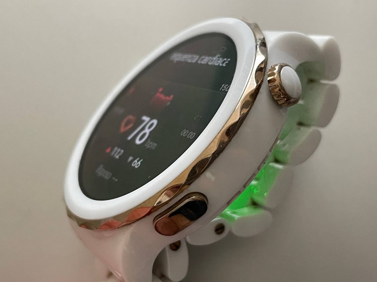 Nello specifico, la Ceramic Edition si ispira all’incontro tra oriente e occidente e unisce il tech all’arte, con un minimalismo particolarmente apprezzato dato proprio dalla ceramica. Bellissimo e ben definito il display AMOLED HD con risoluzione 466×466 da 1,32 pollici, un quadrante leggermente più piccolo della Titanium Edition da 1,43 pollici.
