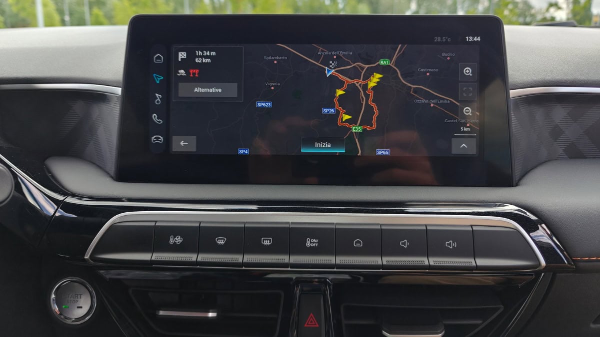 Il sistema a doppio schermo, ereditato dalla MG4, è stato ulteriormente perfezionato con un display digitale da 7 pollici posizionato dietro al volante e un sistema di infotainment touchscreen da 10,25 pollici. Questo sistema offre un’esperienza di infotainment migliorata rispetto alla versione precedente, seppur ancora molto acerba (lasciamo perdere il navigatore!) mentre i comandi stile piano contribuiscono a migliorare la sicurezza e la comodità durante la guida.