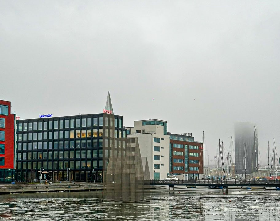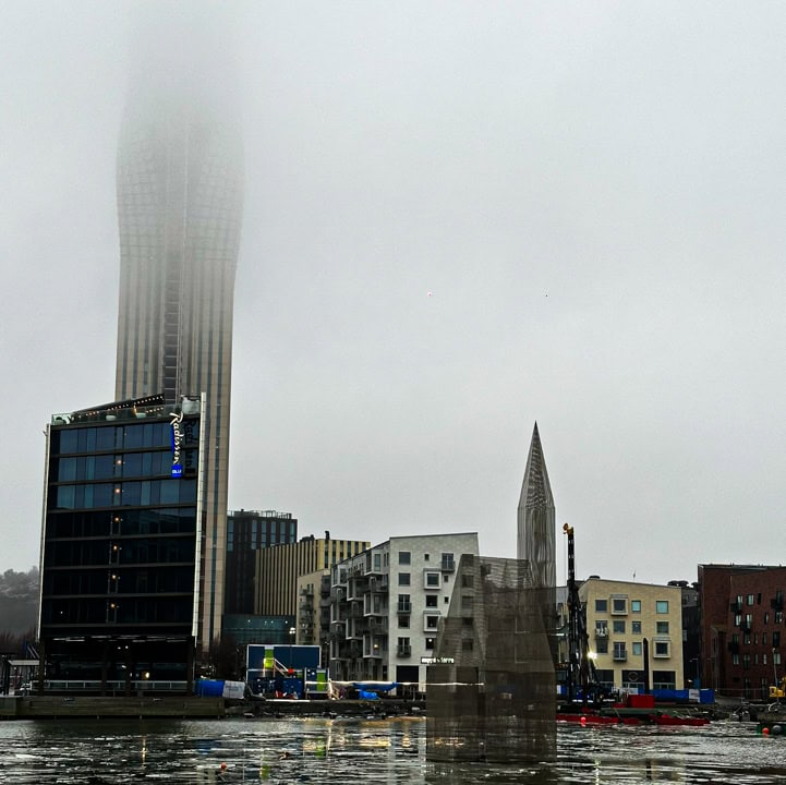 Costeggiamo il fiume (e il termovalorizzatore) per spostarci dalla città antica a una parte molto moderna, Lindholmen