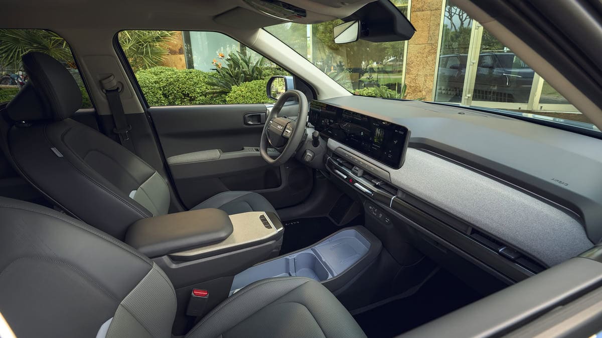 Gli interni della EV3 presentano un design minimalista ma allo stesso tempo ricco di tecnologia. E’ presente infatti il doppio schermo da 12,3 pollici per la strumentazione e il sistema di infotainment, affiancato da un pannello di controllo touch da 5 pollici per la climatizzazione.