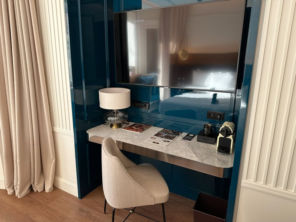 Il complesso della scrivania, con il grande televisore, mi piace tantissimo