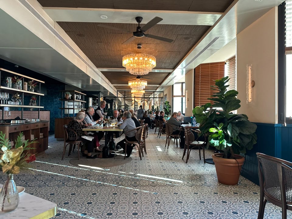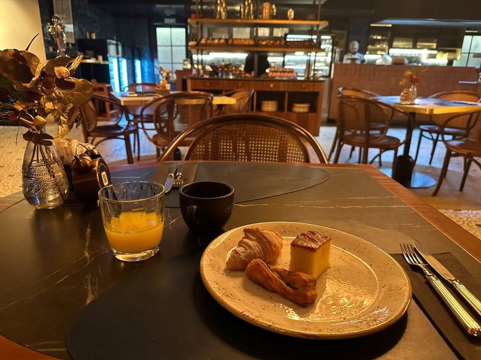 Prima di uscire, caffè al ristorante in cima, coerente nello stile