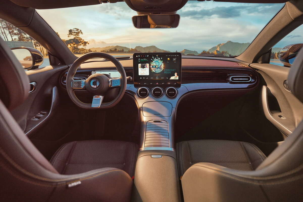 La #3 condivide la piattaforma SEA2 e tutte le configurazioni motore-batteria con la #1, di cui rappresenta la versione più lunga e bassa, ma esteticamente qui il lavoro del team di Gorden Wagener, a capo del design di Mercedes e quindi anche di Smart, secondo me è uscito meglio. Sempre un po’ strano, e personalmente ancora non mi convince, ma la forma filante e schiacciata rende gli elementi più armoniosi.