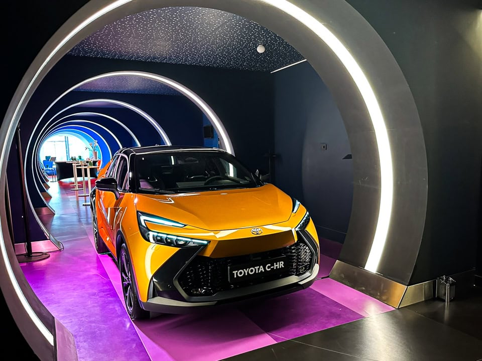 E sul balcone, il piccolo omaggio: un set di Brick Vision, che ricicla Lego, della C-HR.