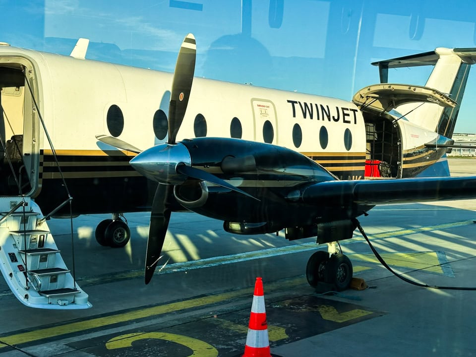 Il ritorno però è la chicca di questo viaggio: ho volato con Twin Jet, semi-sconosciuta compagnia charter francese con aerei a doppia elica piuttosto piccoli