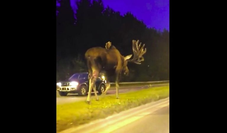 Sembra una domanda da barzelletta, ma è quanto è successo in Alaska, dove un alce davvero enorme stava procedendo serafico sul prato spartitraffico. Sembra una scena tratta da “Un medico tra gli orsi”, vero?