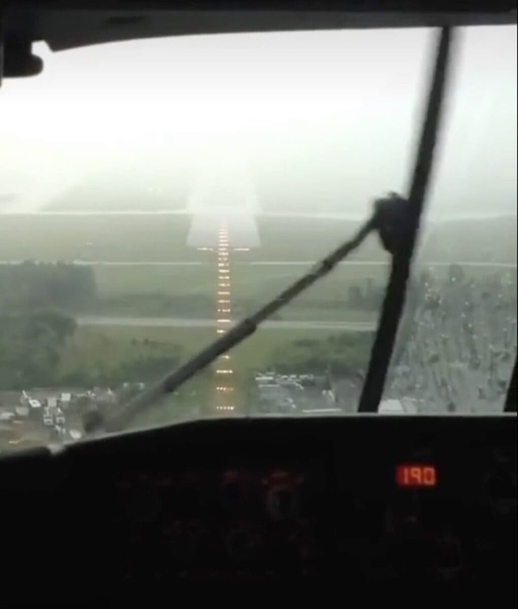 Una situazione del genere rappresenta più che altro una scocciatura per i piloti, che non hanno nulla di cui temere. Per dirla in altri termini, non c’è stato alcuno spavento, ed il battito cardiaco non ha subito alterazioni. E’ una situazione comune nella vita reale e super comune nell’addestramento. Dato che l’intensità di una pioggia di questo tipo è di solito abbastanza transitoria, visto il tempo necessario per ripetere la procedura di atterraggio, molto probabilmente al secondo tentativo i forti acquazzoni erano già passati.
