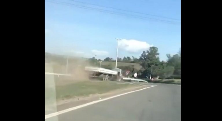 In Brasile un autista di camion pare essersi addormentato mentre era alla guida. L’incidente alla prima rotonda incontrata è inevitabile. Fortunatamente non sono stati coinvolti altri veicoli.