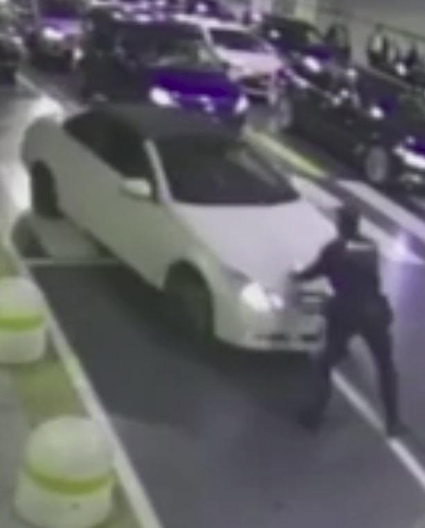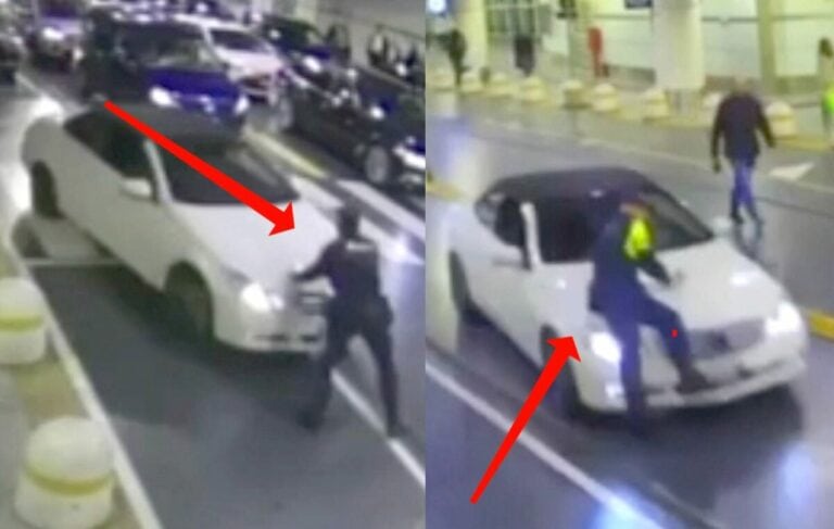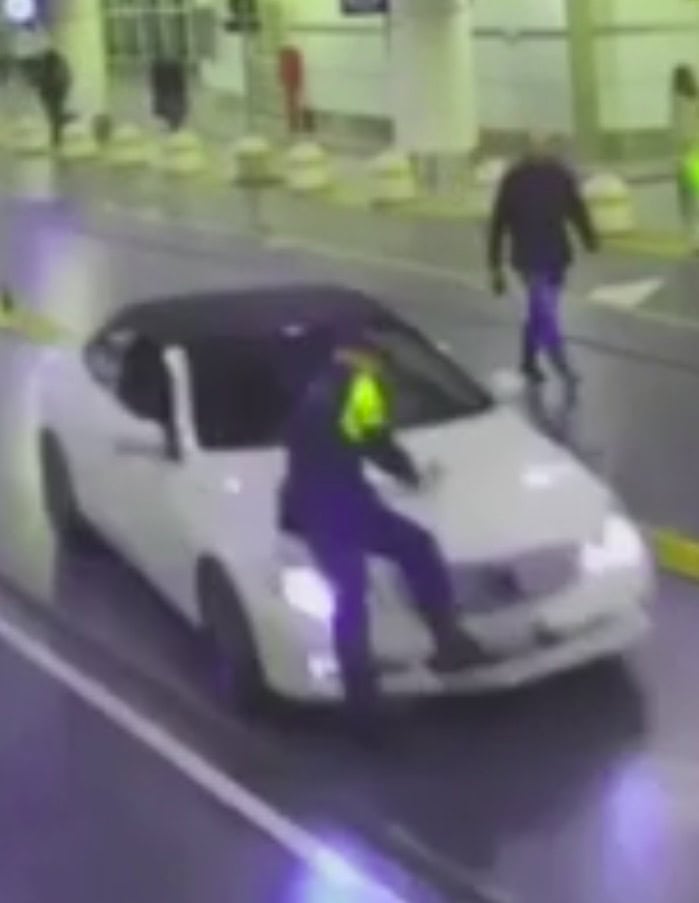 Dopo quello che si ritiene essere stato un diverbio, l’uomo ha tentato di colpire la guardia con la propria auto con un’accelerazione improvvisa. Come si vede nel video, la guardia è stata trasportata sul cofano dell’auto per circa 50 metri prima di cadere a terra. Dopo aver essere fuggito, il conducente è stato successivamente identificato grazie ai sistemi di videosorveglianza.