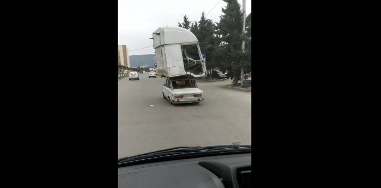 Il video di una Fiat 124 che trasporta la cabina di un camion senza alcun problema, almeno apparentemente. Dalle targhe pare che la scena sia stata girata in in Georgia, per cui dovrebbe essere una Lada 2101. Ma anche se non fosse così, la sostanza non cambia.