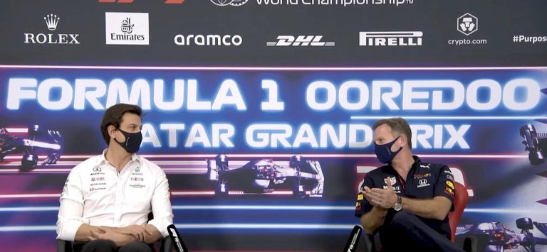 Horner contro Mercedes e Toto Wolf: “La nostra macchina è conforme alla norma, senza dubbio. Abbiamo dubbi sul guadagno di Mercedes nei rettilinei nelle ultime gare? Certamente. Ci aspettiamo che la Fia lo tenga d’occhio? Ci fidiamo totalmente. Vogliamo fare in modo che, in queste ultime gare, le vetture siano dettagliatamente controllate”