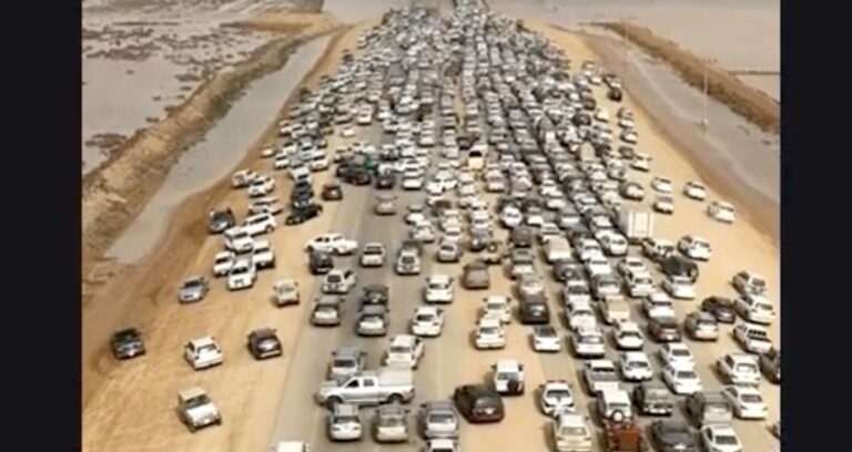 Se pensavate che il deserto fosse solo un luogo di desolazione, dove stare da soli al riparo dalle insidie del mondo moderno, guardate le immagini di questo ingorgo avvenuto nel deserto in Arabia Saudita.