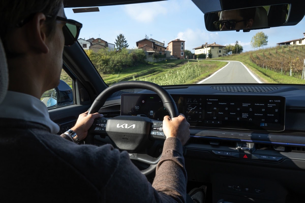 Se la prima sensazione è quella che arriva dalle grandi dimensioni, un po’ come cantava Mina “Sei grande, grande, grande“, il motore elettrico toglie immediatamente qualsiasi tipo di timore reverenziale. La coppia che spinge subito muove infatti la EV9 come fosse un’utilitaria, dando un senso di facilità di manovra piuttosto inaspettato.