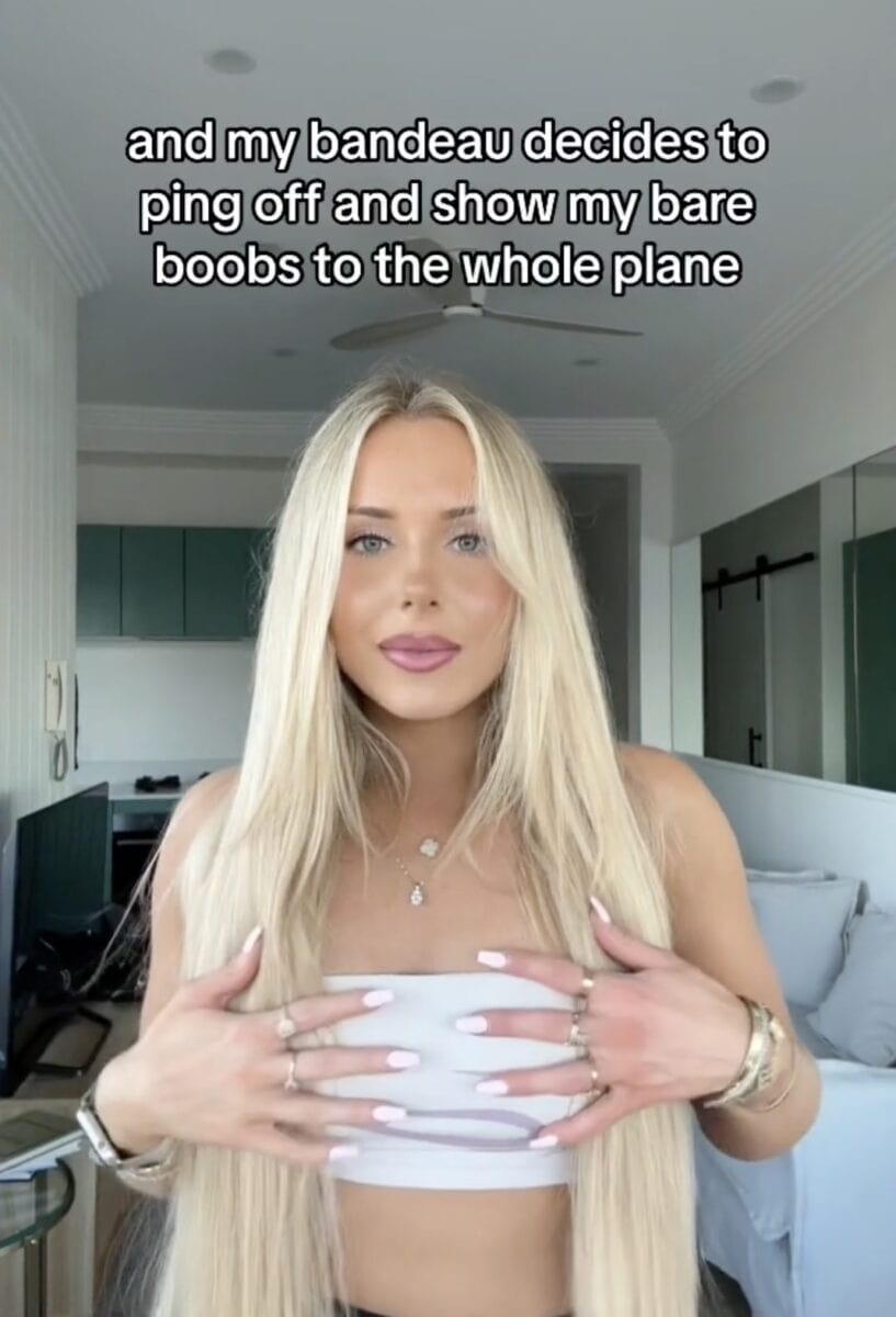 Una tiktoker ha recentemente raccontato perchè è meglio non utilizzare il top a fascia in aereo, e di come si sia ritrovata involontariamente a mostrare il seno a un aereo pieno di turisti. Emma, allenatrice fitness ha condiviso l’incidente in un video con i suoi 131.000 followers caricando un video nel quale ha raccontato l’episodio.