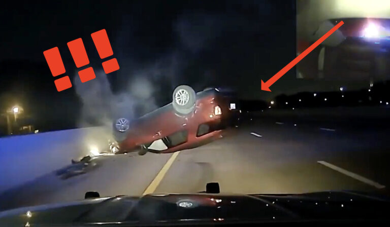 Il video della telecamera mostra la donna che rallenta e accende le luci di emergenza. Secondo il suo racconto, stava semplicemente cercando un posto sicuro per fermarsi, dato che l’autostrada aveva barriere di cemento ai lati. Alcuni minuti dopo, l’agente effettua una manovra PIT, provocando il ribaltamento dell’auto.