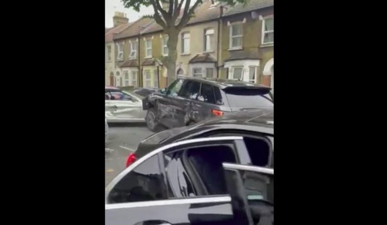 Scena da film in Inghilterra, dove un ladro che aveva appena rubato una Range Rover ha letteralmente seminato il panico nel quartiere, distruggendo diverse automobili sulla strada.