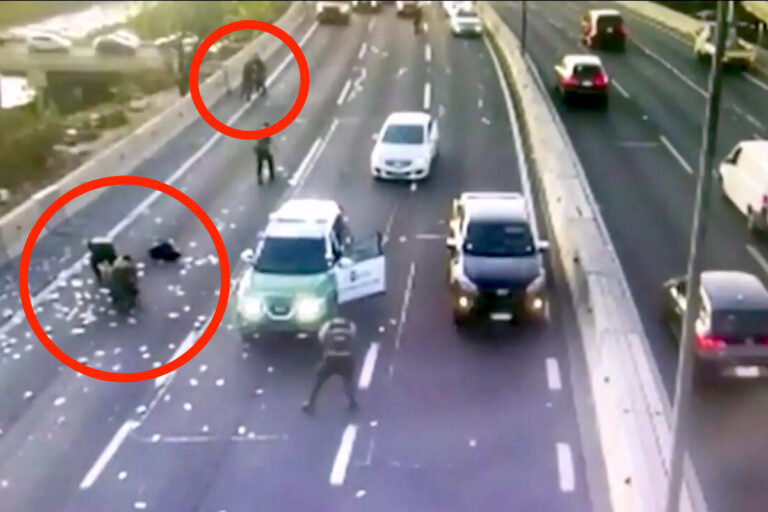 In Cile per un momento sono quasi piovuti soldi dal cielo su un tratto di autostrada, bloccando il traffico. Gli automobilisti si sono infatti fermati per raccogliere le banconote insieme alla polizia, disseminate per qualche centinaio di metri sull’asfalto come si vede nel video.