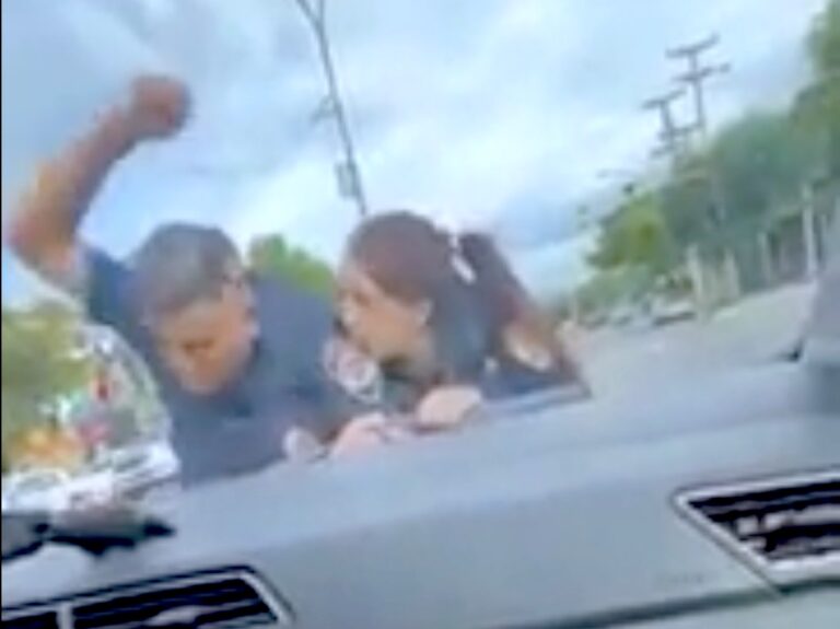 Come si vede nel video, il piede di uno degli agenti finisce sotto la ruota dell’auto, riportando una lesione, è stato portata in ospedale per accertamenti.