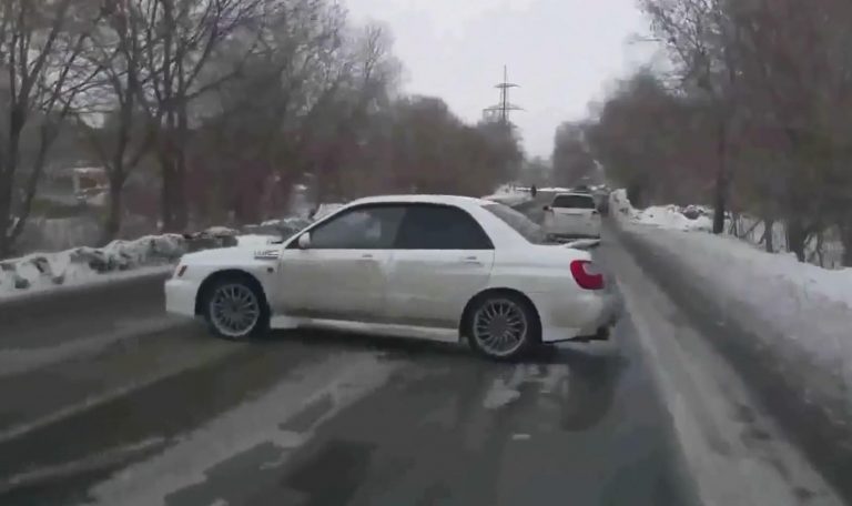 Il video ripreso da una dashcam di una Subaru Impreza va in testacoda durante un sorpasso, ma si salva grazie al 4×4.