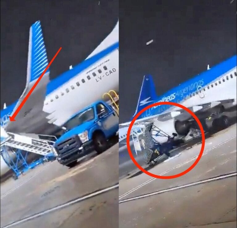 Uno degli incidenti all’aeroporto ha coinvolto un aereo Boeing B737-700 della compagnia aerea Aerolineas Argentinas, che è stato spostato con forza dai venti della tempesta, portando a una collisione con la scala a terra e causando danni all’aereo.