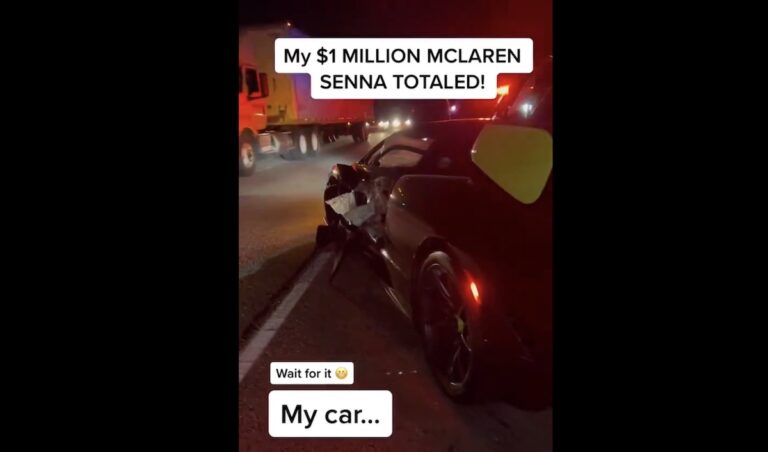 La McLaren Senna da 800 cv è stata infatti colpita dalla Chevrolet sul lato sinistro, mandando in frantumi la fibra di carbonio, con portiera e telaio completamente andati. Secondo il proprietario l’entità dei danni è tale che non sarà possibile ripararla. Tuttavia, dovremo aspettare per vedere se questa Senna sarà effettivamente distrutta. Per quanto riguarda la Cobalt, dato lo stato della parte anteriore, probabilmente sarà destinata alla rottamazione. Fortunatamente, nessuno è rimasto ferito nell’incidente.