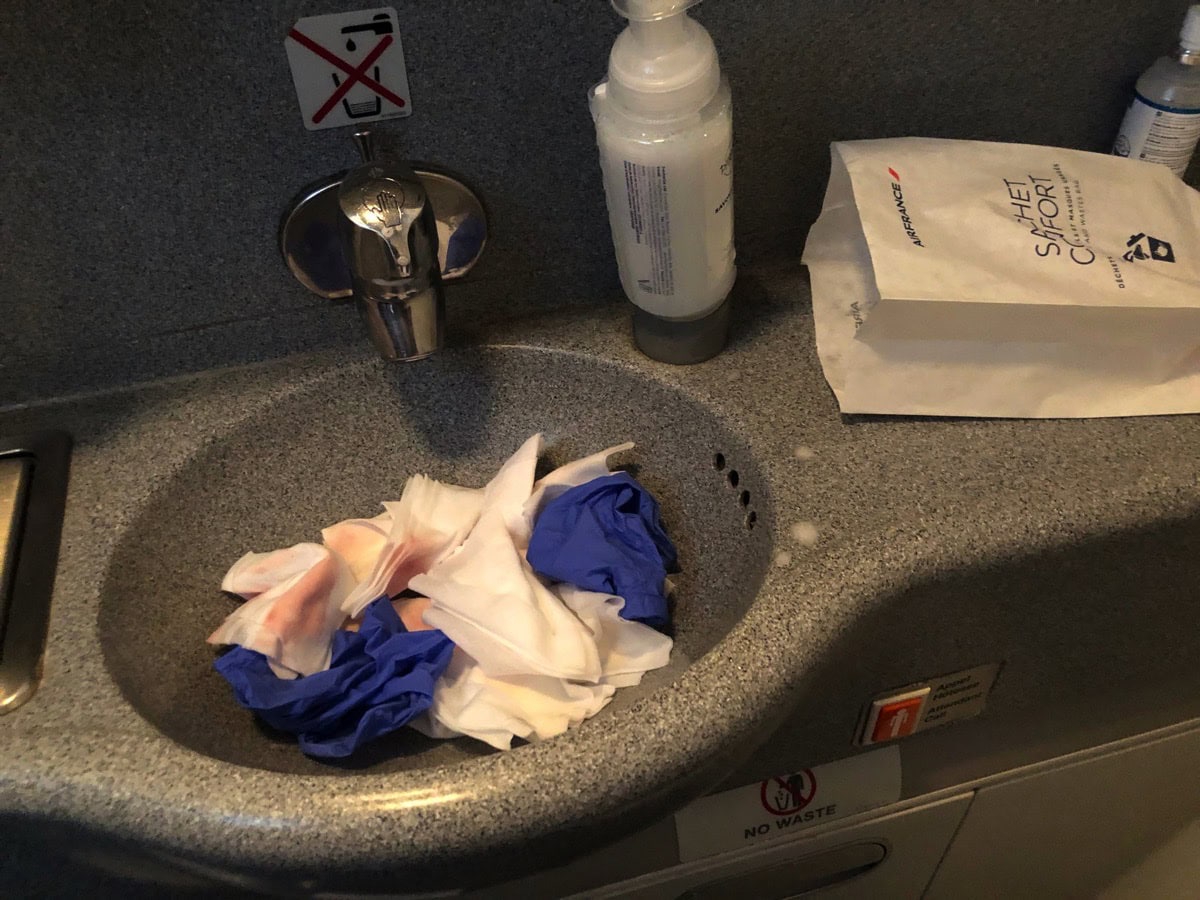 I’ve seen a few things in my life, but the horrific blood-soaked carpet on my @airfrance plane yesterday was another level! An hour into the transatlantic flight from Paris to Toronto, I kept smelling something gross and couldn’t figure it out. Until I got up and looked down…(1 pic.twitter.com/if919aLlO8
