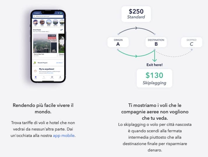 Skiplagged è diventato famoso grazie al suo modo innovativo di far risparmiare i viaggiatori. Come accennato, il sito individua itinerari con una fermata intermedia e permette ai clienti di acquistare voli per destinazioni più lontane per poi scendere al punto di scalo, risparmiando sui prezzi. Questa pratica, nota come “hidden-city”, è controversa perché viola i termini di servizio delle compagnie aeree, pur non essendo illegale.