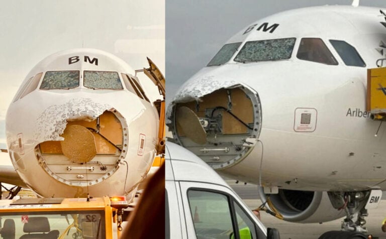Un volo dell’Austrian Airlines ha incontrato una violenta tempesta di grandine che ha gravemente danneggiato il muso dell’Airbus A320. L’aereo è riuscito ad atterrare in sicurezza a Vienna.