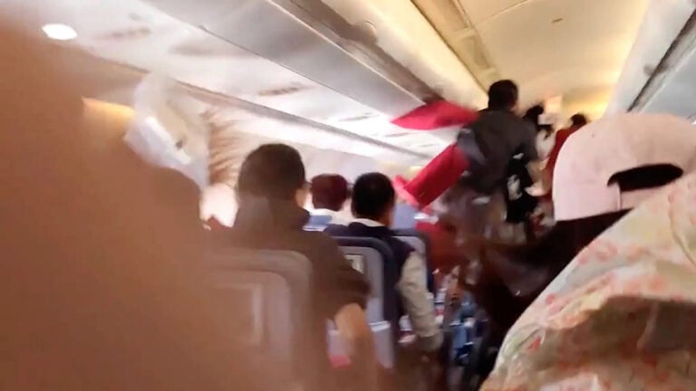 Il video scioccante riprende il momento in cui l’aereo si è abbassato di diverse centinaia di piedi in pochi secondi, scatenando il panico tra i passeggeri e gli assistenti di volo che sono stati sbalzati in aria. Almeno due persone a bordo sono rimaste ferite, non gravemente, a causa dell’incidente.